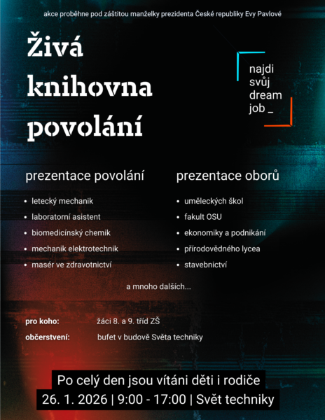 výběr střední školy je velký krok, ale nemusí to být krok do neznáma. Zveme vás na Živou knihovnu povolání – akci, která vám i vašim dětem pomůže najít tu správnou cestu.